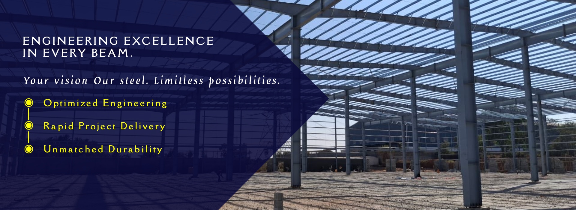To engineer smart, scalable, and sustainable building solutions through excellence in design, fabrication, and on-time delivery — empowering industries across India.